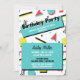 Fun birthday party invitation for an 80s or 90s themed party featuring a retro pattern in yellow, red, and turquoise.