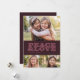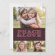 Peace and love. This three-photo holiday card features a retro styled greeting but always relevant message of peace and love. The berry and plum colour scheme, distressed texture on the back and rounded corners give it even more of a vintage feel.