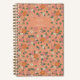 This spiral notebook features an all-over retro illustrated floral pattern in peach, pink, orange, lavender, and cream with "NOTES" and your name in white type centered on the cover. Warm, groovy, and a great personalized gift for anyone who loves a pretty notebook.