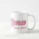 Fun pink and white personalised nurse mug featuring the word Nurse in a bold textured retro font, and your custom name.