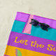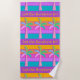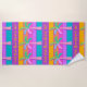 Personalise this fun sunset stripe with colourful palm trees beach towel with your own message, or use the one shown. Playful vibrant multicolor hues invoke the midcentury modern vibe of the desert oasis Palm Springs, California.