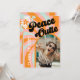 Fun retro hippie vibes photo graduation party invitation! Swirly sunburst lines in soft pink, pastel blue and orange with groovy flowers and the words "Peace Outie" in retro lettering. Add your graduate's photo on the front and graduation party information on the back.