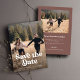This is a bohemian wedding save the date card using a retro vintage style font along with a modern and simple photo design.