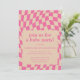 Celebrate in style with this retro-inspired baby shower invitation featuring a trendy wavy chequered pattern in pink. With customisable text and a vibrant colour palette, this modern yet playful design sets the perfect tone for a fun and memorable celebration. Personalise the details to make it uniquely yours!