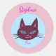 Retro Pink and Blue Purring Kitty Classic Round Sticker