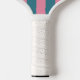 Pink and blue stripes are on this pickleball paddle. At the top, there's display text you can edit the show the recipient's name. This pickleball paddle has a retro '70s style colour palette that includes muted pink and blue.