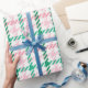 Retro pink and green houndstooth plaid pattern wrapping paper