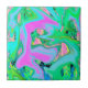 Retro Pink and Light Blue Liquid Art on Hydrangea Ceramic Tile