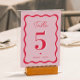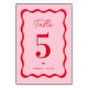 Retro Pink and Red Modern Wavy Wedding Table Numbers