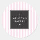 Retro Pink and White Stripes Bakery Classic Round Sticker
