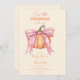 The Retro Pink Bow Pumpkin Baby Shower Invitation brings a blend of vintage charm and festive fun to your celebration. This design is perfect for a fall-themed baby shower with a touch of elegance and a dash of playful nostalgia.