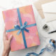 This fun and contemporary wrapping paper features a vibrant design with abstract geometric shapes that many people would find appealing. Its striking colour palette includes light blush pink, pastel orange, and sunny yellow hues, creating a unique aesthetic. The ornate, elegant, and eclectic style of this design resonates with artistic fashionistas, trendsetters, and anyone who appreciates vintage retro art as well as abstract digital motifs. This versatility makes it an excellent choice for wrapping gifts and presents for friends and family.