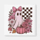 Muted blush, cream, and warm brown tones create a #nostalgicaesthetic that’s playful yet stylish. The bold chequerboard backdrop paired with the soft #cottagegoth floral details adds contrast, letting the ghost stand out with whimsical flair.