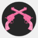 Retro Pink Crossed Pistols Classic Round Sticker