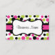Bright pink, lime and black polka dots decorate this stylish business card. Customise the information on this business card to suit your needs, add or delete information, change the font style, font size, etc...The design is from original art. Use this business card for a spa, salon, small business, home decor, event planner, bakery, cake designer, gourmet food, chocolates, boutique, child care, preschool, daycare, candy, ice cream, etc...