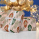 Add some retro flair to your gift-giving with this stylish Christmas wrapping paper. It has ornaments in green, orange, and tan on a pink background. /cao/c
