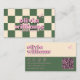 Retro Pink Green QR Code Groovy Chequered Funky Business Card