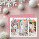 Retro Pink Happy Holidays 5 Photo Collage Holiday Card