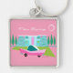 Between the pink background, turquoise mid century modern home, and the classic 1950s car, this design couldn’t be more Palm Springs if it said it in the clouds. Oh, wait, it does say it in the clouds! The blue and teal stone of the house is offset by the sputnik light fixtures framing the hot pink door. This kitschy, retro design welcomes you to live your most fabulous life.