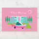 Between the pink background, turquoise mid century modern home, and the classic 1950s car, this design couldn’t be more Palm Springs if it said it in the clouds. Oh, wait, it does say it in the clouds! The blue and teal stone of the house is offset by the sputnik light fixtures framing the hot pink door. This kitschy, retro design welcomes you to live your most fabulous life.