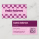Make a stylish and memorable impression with this pink and purple checkerboard business card featuring a modern QR code for instant connection. Designed with a trendy retro-inspired check pattern and bold typography, this card perfectly blends aesthetic appeal with professional functionality.