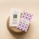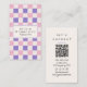 Retro Pink Purple Chequered Trendy Boho QR Code Business Card
