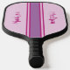 Retro style pink, purple and fuschia striped pickleball paddle would be a great gift for someone. You personalise it with your name on either side of the stripes.