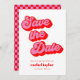 Retro Mod Groovy Bold Pink Red Chequerboard Bat Mitzvah Save the Date