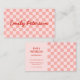 This retro style business card features a pink chequered background and a contrasting red font. Add your company info, social media or website to the back side of the card.
