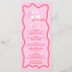 A cool bold wedding menu with custom names with a hand written calligraphy and serif font, 2 names , two styles with Retro pink red curve squiggle wavy wedding. All the text, names and background colours are customisable for you to mix and match your wedding suite.