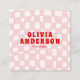 Retro Pink Red QR Code Groovy Chequered Girly Boho Square Business Card