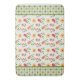 Whimsical retro inspired panel features pink birds on branches with yellow flowers, surrounded by green dot grid pattern