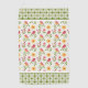 Whimsical retro inspired panel features pink birds on branches with yellow flowers, surrounded by green dot grid pattern