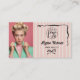 A playful, retro-inspired design crafted for stylists who want their branding to feel fun, current, and memorable. The soft pink stripes paired with hand-drawn bow doodles give it a lighthearted charm, while the bold photo section highlights your work and personality instantly. The back layout includes space for a scannable QR code along with your socials, making it easy for clients to connect or book in seconds. Perfect for salons, freelancers, and beauty professionals who love a cute, offbeat aesthetic with a polished feel.