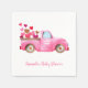 This fun, pretty and cheerful gender neutral baby shower napkin features the mother-to-be's name in a contemporary pink script and a cute watercolor illustration of a retro pink truck overflowing with hearts. You can also personalise the text on the truck with a name or gender (it's a boy!) or leave blank.