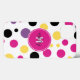 Retro Pink White Monogram Polka Dots iPhone Case. A fun and fresh design with various polka dots in hot pink, periwinkle, yellow, and black on a white background. Personalise the phone case with your monogram and name and add a little playfulness to your daily life with this colourful, cheerful design.