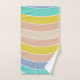 Retro pink yellow teal blue bath towel set with geometric round wave pattern. Beautiful fresh retro colours Scandinavian style pattern.