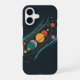 A vibrant retro cosmic illustration featuring planets arranged in simple orbits, colored in bold vintage tones with textured details.
