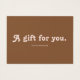 Give the perfect present with a gift card that's as stylish as it is thoughtful. This card features a warm and sophisticated color palette, blending soft blush pink with rich, earthy brown. The front makes a charming statement with the quote "A gift for you," presented in "Tango," a fun and decorative retro font full of personality. On the back, you'll find a clean, simple layout with space for "To" and "From," plus any other details you need. It's the ideal way to give a gift they're sure to love, all wrapped in one beautifully designed package.