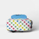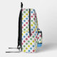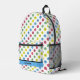 Personalise this printed backpack that has retro polka dots design with your name. The pattern has 4 colours polka dots with retro atomic symbols and a vintage printing texture. Or take off the colour blocking and name for bulk order for a small store order.