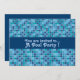 A party invitation for a pool party featuring a retro hip, cool graphic of patterned blue pool tiles in blue and aqua. The text on this invitation is fully customisable to include your own personal details.