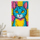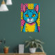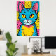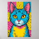 Step into a time machine with this electrifying pop art creation! Inspired by the bold, neon-drenched aesthetic of the 1980s, this design is a vibrant tribute to an era of arcade games, cosmic wonder, and fearless style. What makes this piece so special is its dynamic energy and eclectic charm. The cool, cyan-blue cat, with its captivating golden eyes, isn't just posing; it's bursting through a psychedelic collage of hot pink, sunny yellow, cosmic stars, and playful polka dots. This isn't just artwork; it's a statement of personality for anyone who loves colour, embraces nostalgia, and isn't afraid to stand out. Let this funky feline bring a splash of joyful, retro rebellion to your world.