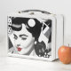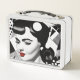 This is a standard metal lunchbox that appears to work just fine. We designed this box ourselves with an uploaded photo and custom text on the front and back. It looks absolutely beautiful except the front of the lunchbox is not centered like it shows in the photo. The print borders don't align with the inset flat part of the box where the preview photo online showed it perfectly centered in there. The back looks nice and centered though.