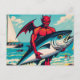 Retro Pop Art Devil With A Tunafish on the Beach Postcard