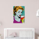This features a playful, retro-inspired design that combines elements of pop art and vintage diner culture. The central image is of a smiling girl holding a tall, creamy milkshake, surrounded by bold, colorful graphics. The overall effect is fun and sure to add a touch of whimsy to any space.