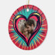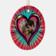 Personalised Valentine's Day ornament with a retro pop art red, blue and yellow heart. This card can be for him or her. The heart is in a gothic tattoo style on the back. You can add your favourite photo and your names in the personalise area.