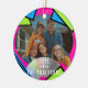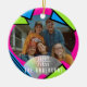 A fun and colourful y2k vibe ceramic ornament with space for your photo and name.
