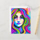Retro Portrait of a Woman with Rainbow Hair Postcard