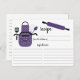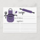 Fun retro bridal shower kitchen recipe cards featuring a purple polka dot apron with kitchen tools & rolling pin. The front of our recipe card offers room for a recipe title, from the kitchen of and ingredients space. Flip our recipe card over to view our lined back for recipe directions. Visit our shop for matching bridal shower invitations Available in our shop in a large assortment of popular wedding shower colours. Perfect bridal shower invitation insert for a stock the kitchen bridal shower.