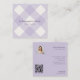 Retro Purple Bakery Gingham QR Code Photo Square Business Card
